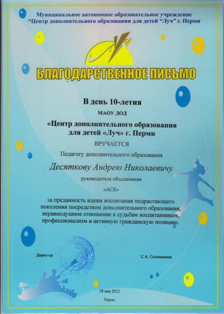 ЮБИЛЕЙ МАОУ ДОД "ЦДОДД "Луч" г.Перми