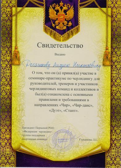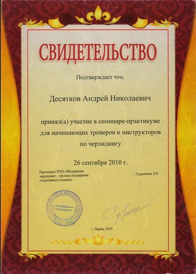 В 2012 году прошел курсы повышения квалификации Южно-Уральском государственном университете